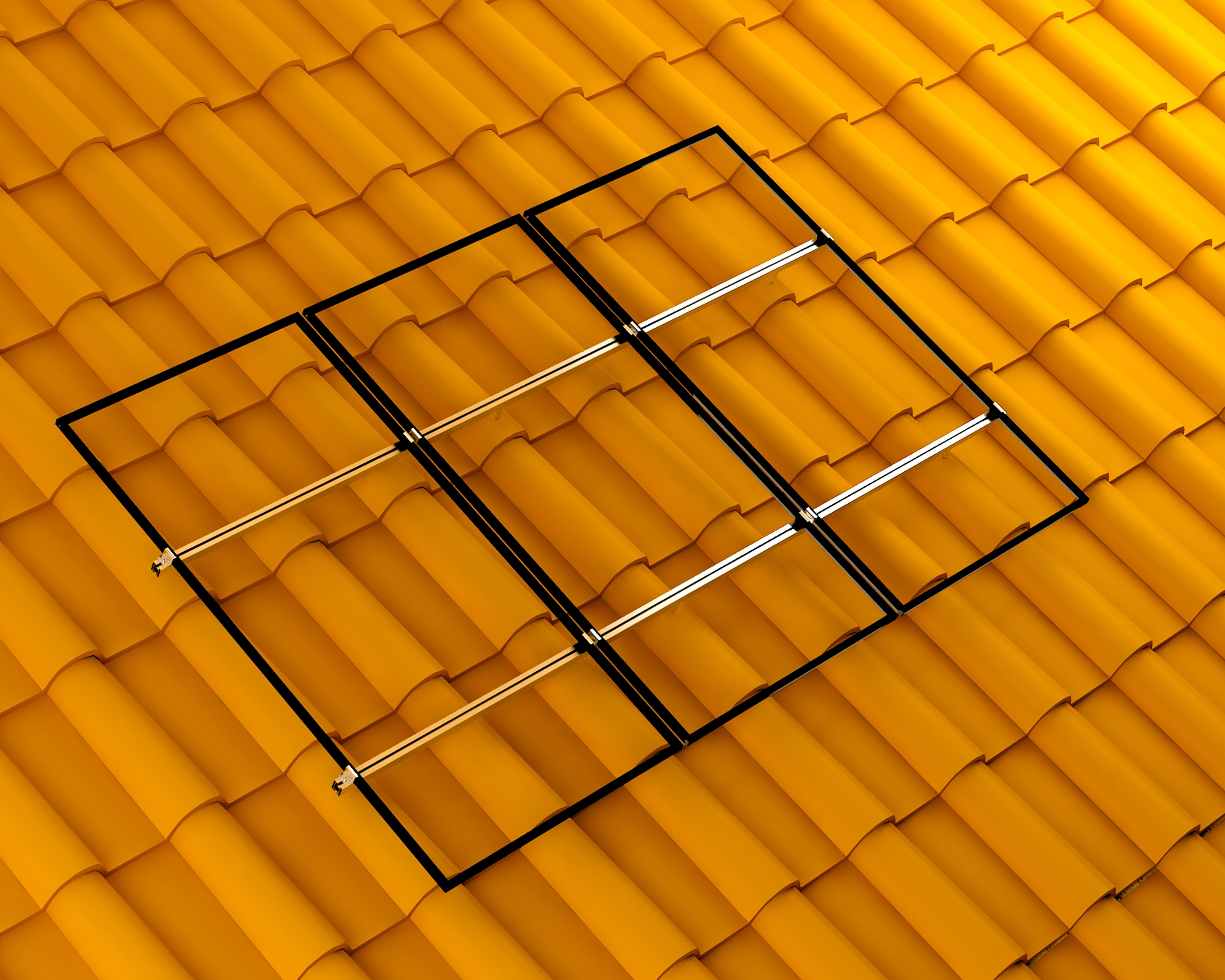 La estructura sobre Teja siempre se pondrá perfil continuo con la posibilidad de anclar al tejado con el agarre bajo teja o el tornillo roscado.